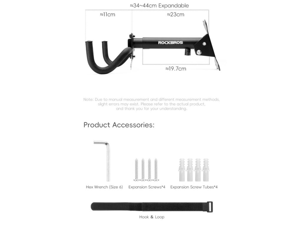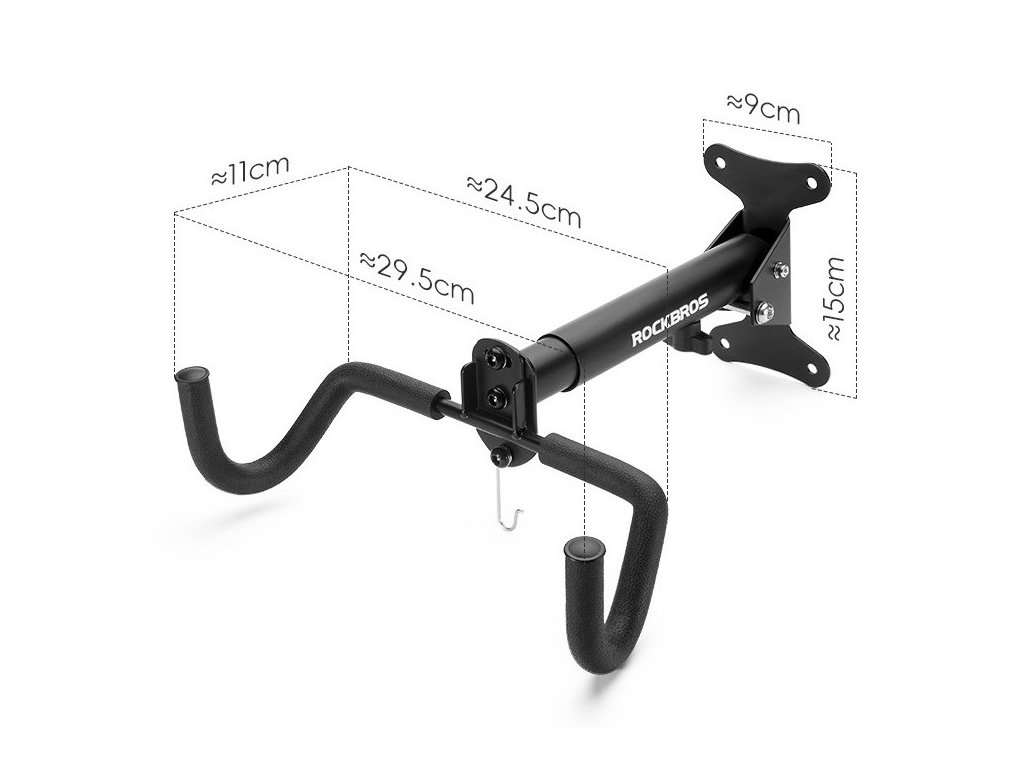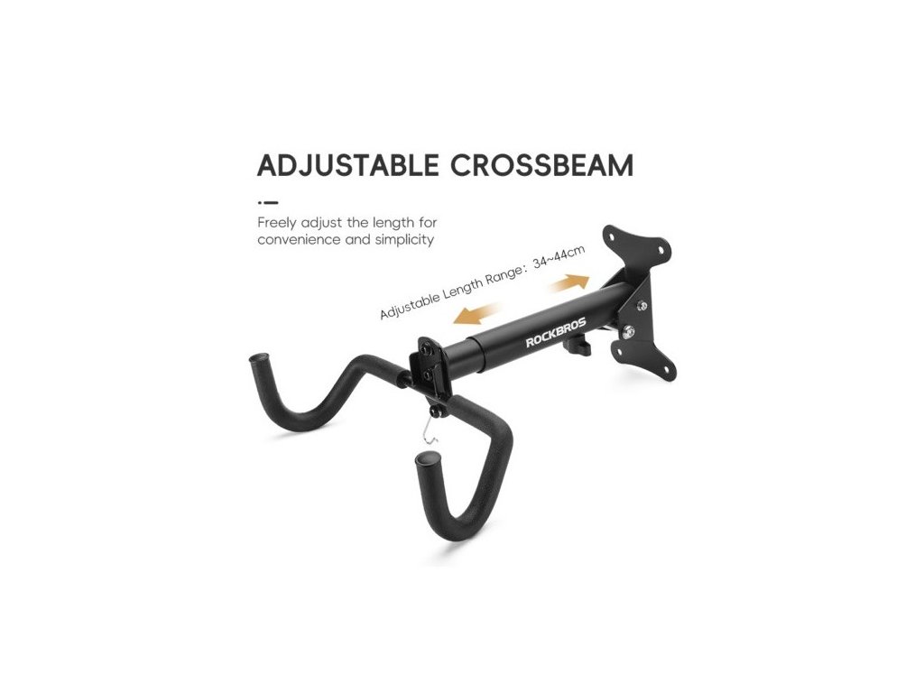 Držiak bicykla Rockbros aj pre e-bike, oceľ, čierny, s uchytením za rám bicykla, sklápací, s ochranným poťahom, dĺžka ramena 340-440 mm, šírka ramena 295 mm, max. zaťaženie 30 kg, hmotnosť 1025 g.