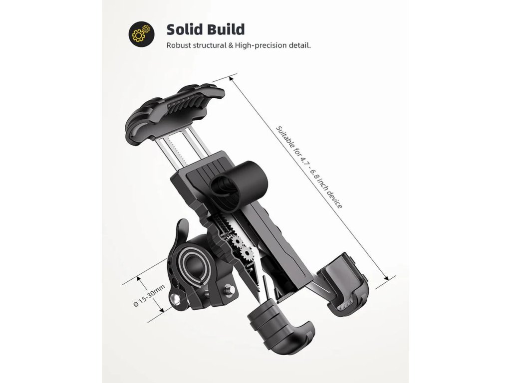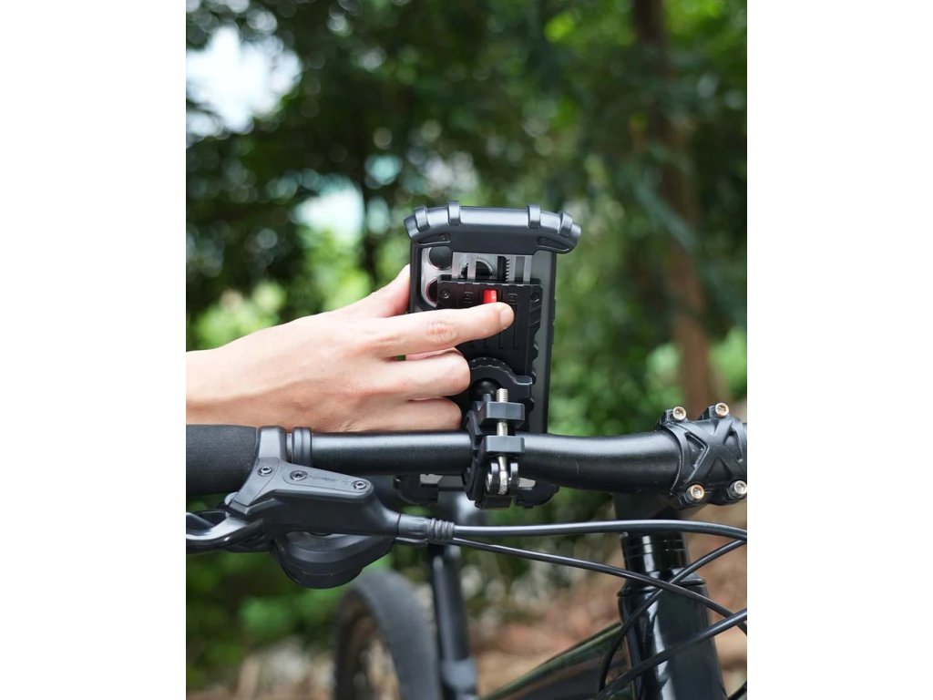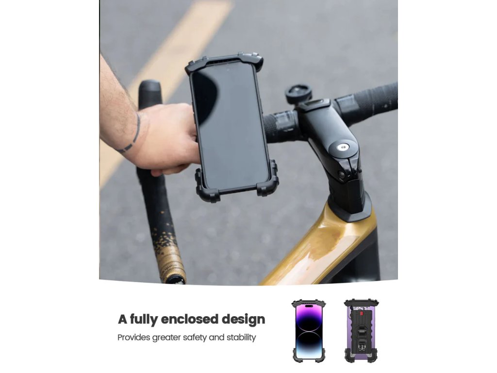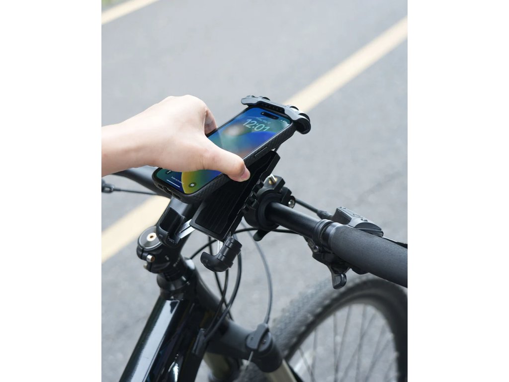 Vďaka komplexnému dizajnu je náš držiak navrhnutý tak, aby zvládol požiadavky mestskej a cestnej cyklistiky, a poskytuje pevný a spoľahlivý úchop pre váš telefón, ktorý zabezpečí, že zostane na mieste aj na hrboľatých cestách. Môžete sa spoľahnúť, že tento držiak udrží váš telefón v bezpečí a bude k nemu prístupný počas vašich cyklistických dobrodružstiev.