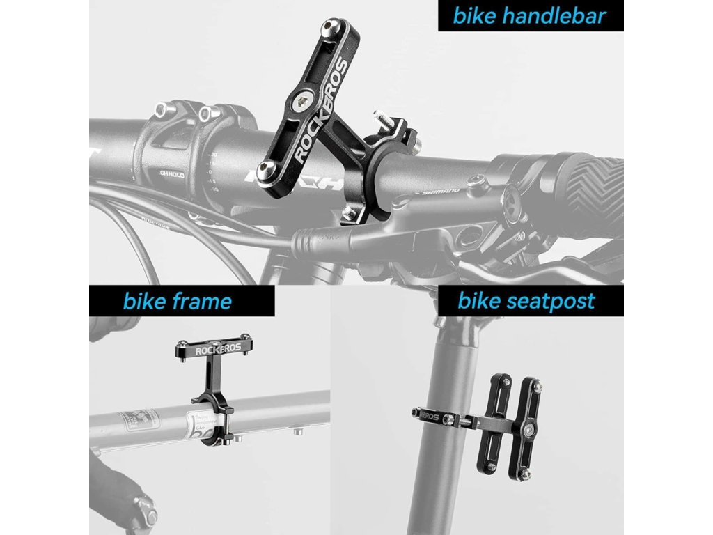 Adaptér RockBros držiaka fľaše na sedlovku bicykla, alebo na riadidlá. Nastaviteľná hliníková konštrukcia umožňuje upnúť košík fľaše takmer kdekoľvek na bicykel. CNC spracovanie v matnej čiernej farbe. Stále sa obávate, že nemáte dostatok miesta alebo predvŕtaných otvorov na inštaláciu košíka na fľašu? Adaptér držiaka na fľašu ROCKBROS rieši tieto problémy, možno ho nainštalovať na riadidlá, sedlovku alebo, rám bicykla. Sklopný montážny systém je rýchly a jednoduchý.Vyrobený z vysoko pevnej hliníkovej zliatiny, CNC opracovaný, pevný a ľahký dizajn, hladký povrch odolný voči hrdzi.Držiak je možné otočiť o 90 stupňov, aby vyhovoval polohe inštalácie, môžete ho nastaviť vodorovne, alebo zvisle podľa svojho zvyku, čím si uľahčíte vyberanie fľaše s vodou. Na nastavenie je potrebný šesťhranný kľúč.Adaptér držiaka na bicykel je dodávaný s 1 dištančnou vložkou a 1 gumeným kusom, ktoré vám umožnia prispôsobiť si držiak na bicykel od priemeru 21 do 31,8 mm.Vhodné pre cestné horské bicykle, e-bike, detské bicykle ... . Hmotnosť: 61 g. Balené v Rockbros krabičke.