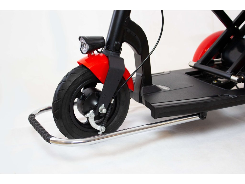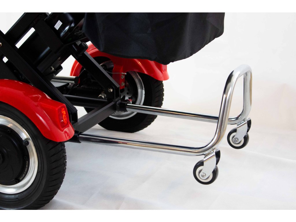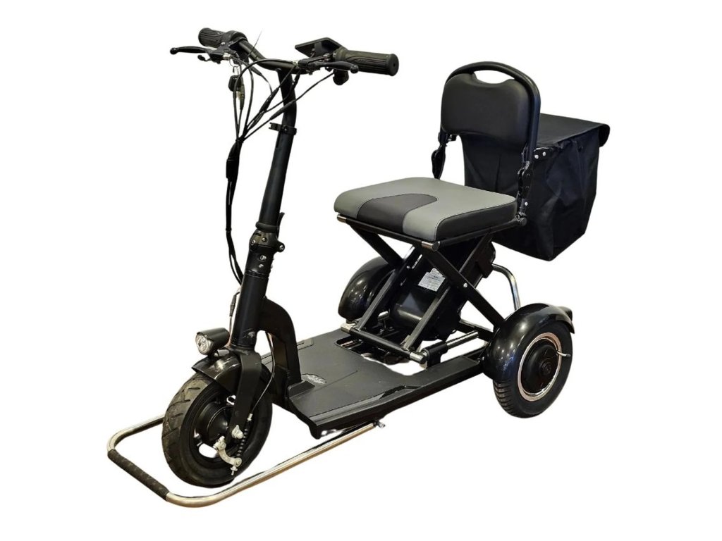 Skladacia elektrická trojkolka „MoBot“ je ideálnym vozítkom do mesta či dediny, na nákupy, alebo na výlet. Je vhodná pre ľudí s nižšou ako aj vyššou postavou. Správne a pohodlné sedenie si prispôsobíte jednoduchým nastavením sklonu opierky pohodlného sedadla a výškovo nastaviteľnými riadidlami. Stále ostane dostatok miesta pre nohy. Jednoduchým sklopením sedadla a riadidiel ju môžeme zložiť na malé a kompaktné rozmery, vložiť do kufra auta a vziať so sebou. Predná, sklopná konzola môže byť použitá ako rukoväť vozítka na ťahanie a zároveň chráni "MoBot" pred poškodením. Zadná výsuvná konzola slúži pre vašu bezpečnosť a zároveň je možné ju použiť ako nosič pre nákupný košík. Súčasťou balenia je aj praktická pripojiteľná taška.