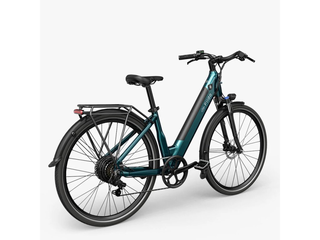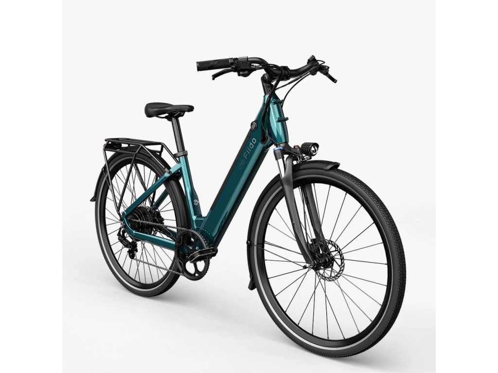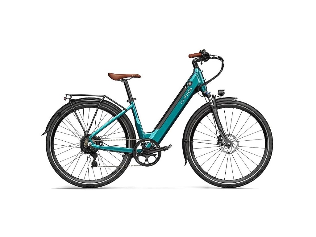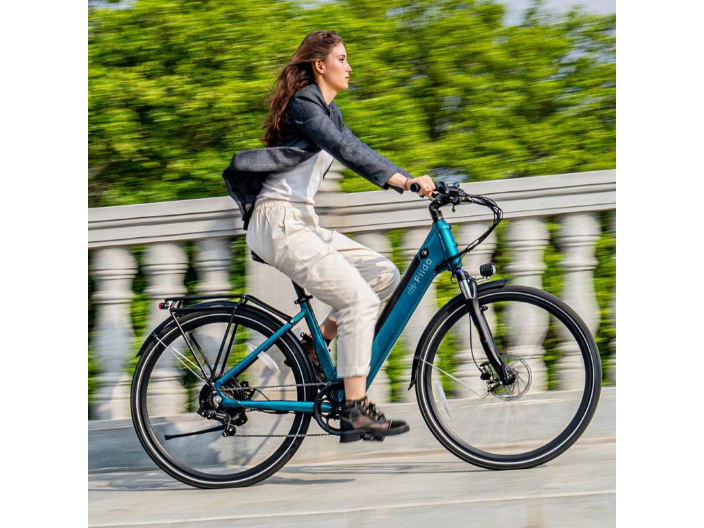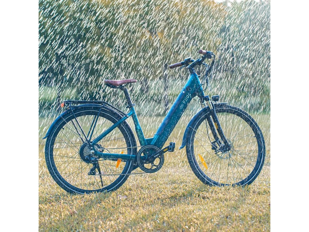 Elektrobicykel v elegantnej smaragdovo-modrej, ako pre mužov, tak aj pre ženy.