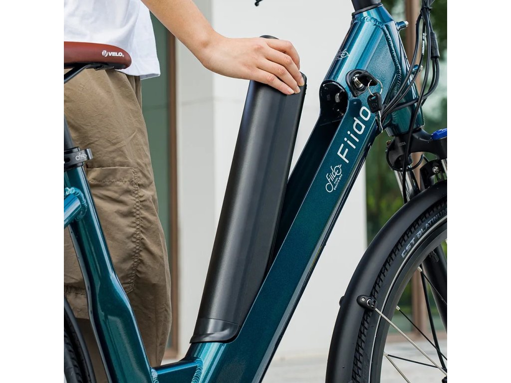 Batériu viete nabíjať na bicykli alebo ju viete kľúčom odomknúť, vybrať a nabíjať ju samostatne.