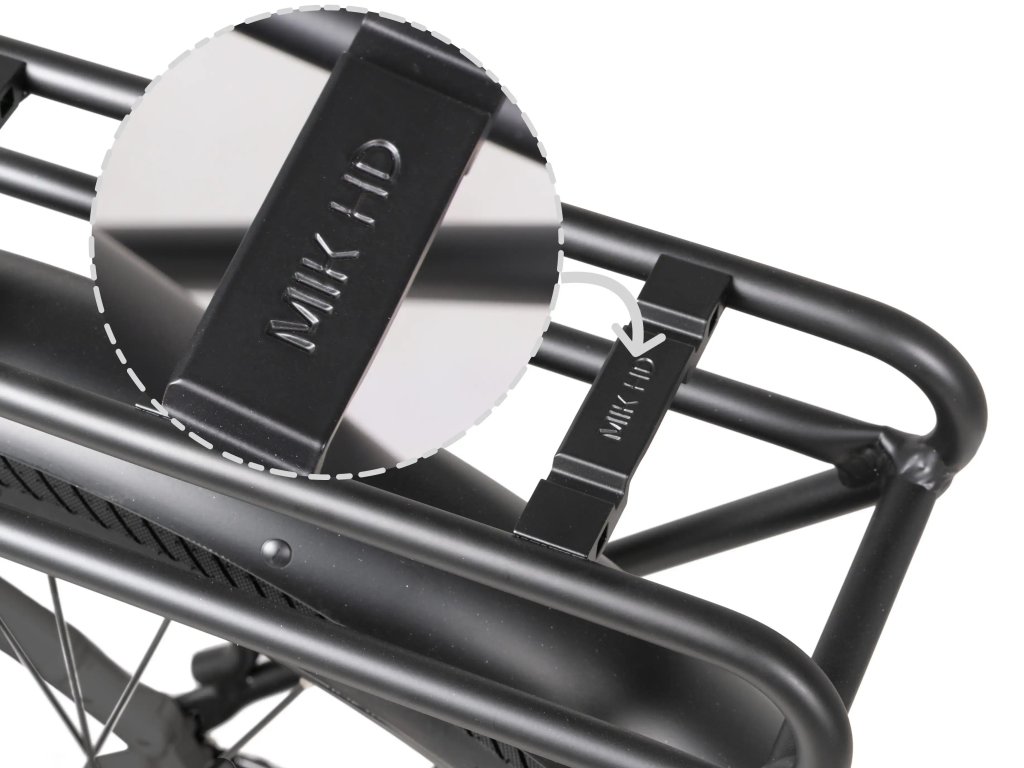 Zadný nosič (systém MIK) zvyšuje praktickosť bicykla, vďaka čomu je všestrannejší pre rôzne potreby: rýchloupínací dizajn, jednoduchá inštalácia, vysoká všestrannosť, kompatibilný s rôznym príslušenstvom, stabilný a bezpečný.