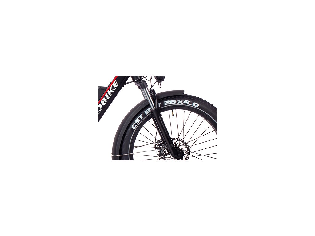 Hydraulické brzdy, predné nastaviteľné odpruženie, odpružená sedlovka + Fat kolesá CST 26" × 4" pre bezpečnú a komfortnú jazdu.
