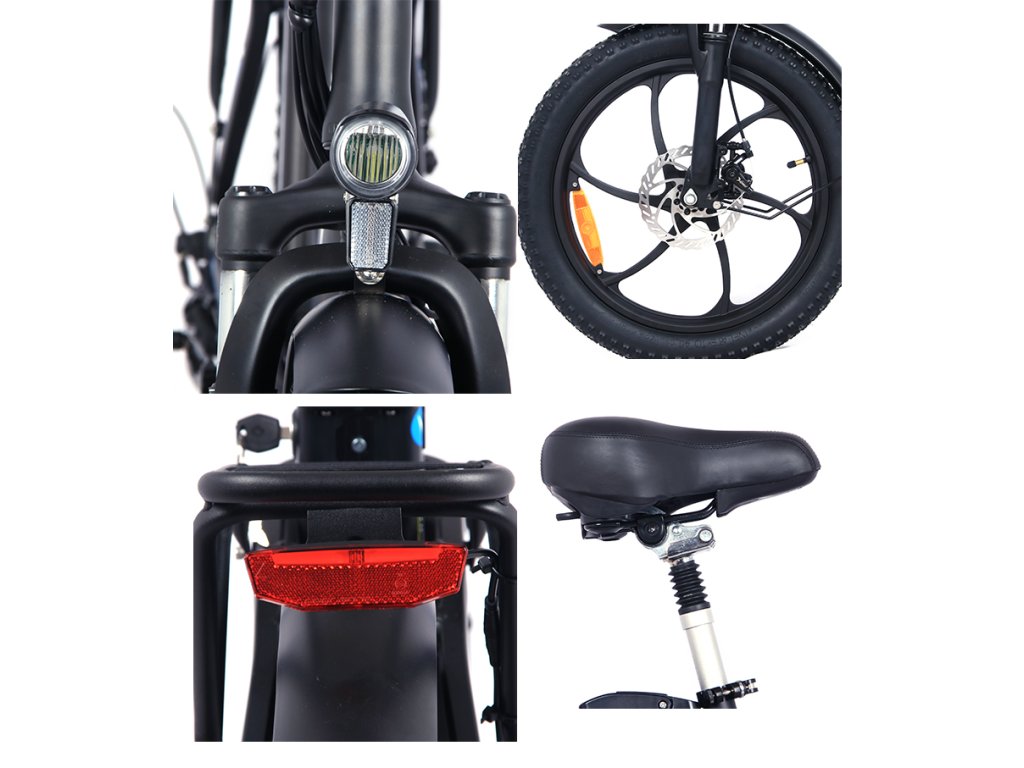 | Poznámky/ďalšia výbava: | 3 + 1 úrovne elektropomoci režimu jazdy + asistent do kopca, stojan, nabíjačka, informačný farebný displej, predný a zadný blatník, zadný nosič (zaťaženie až do 25 kg), zvonček, bočné odrazové sklíčka, pomocný stojan pri zložení, krytie IPX5, odpružená sedlovka, alarm s DO |