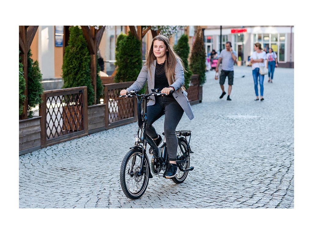 | Poznámky/ďalšia výbava: | 5 + 1 úrovne elektropomoci režimu jazdy + asistent jazdy do kopca, stojan, nabíjačka, informačný farebný displej, predný a zadný plastový blatník, zadný nosič (zaťaženie až do 25 kg), pomocný stojan pri zložení, zvonček, krytie IPX5 |