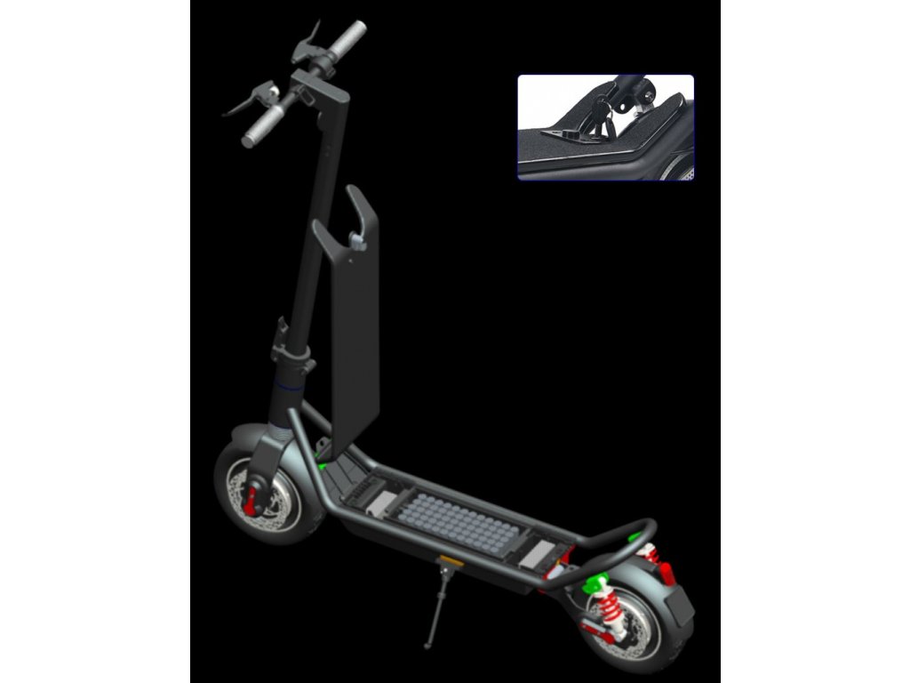 Výborná kolobežka v modernom dizajne s vyšším výkonom a dobrou kapacitou batérie má dojazd až do 45 km. Ako jediná vo svojej kategórii umožňuje zvýšiť maximálny dojazd, a to až do 90 km, rýchlou a naozaj jednoduchou výmenou druhej batérie, ktorá sa upevňuje v originálnom puzdre na tyč riadenia alebo sedadla. Je to ekologický dopravný high-tech produkt, ktorý sa vyznačuje komplexným jazdným komfortom, dobrým tlmením nárazov, bezpečnosťou a spoľahlivosťou.