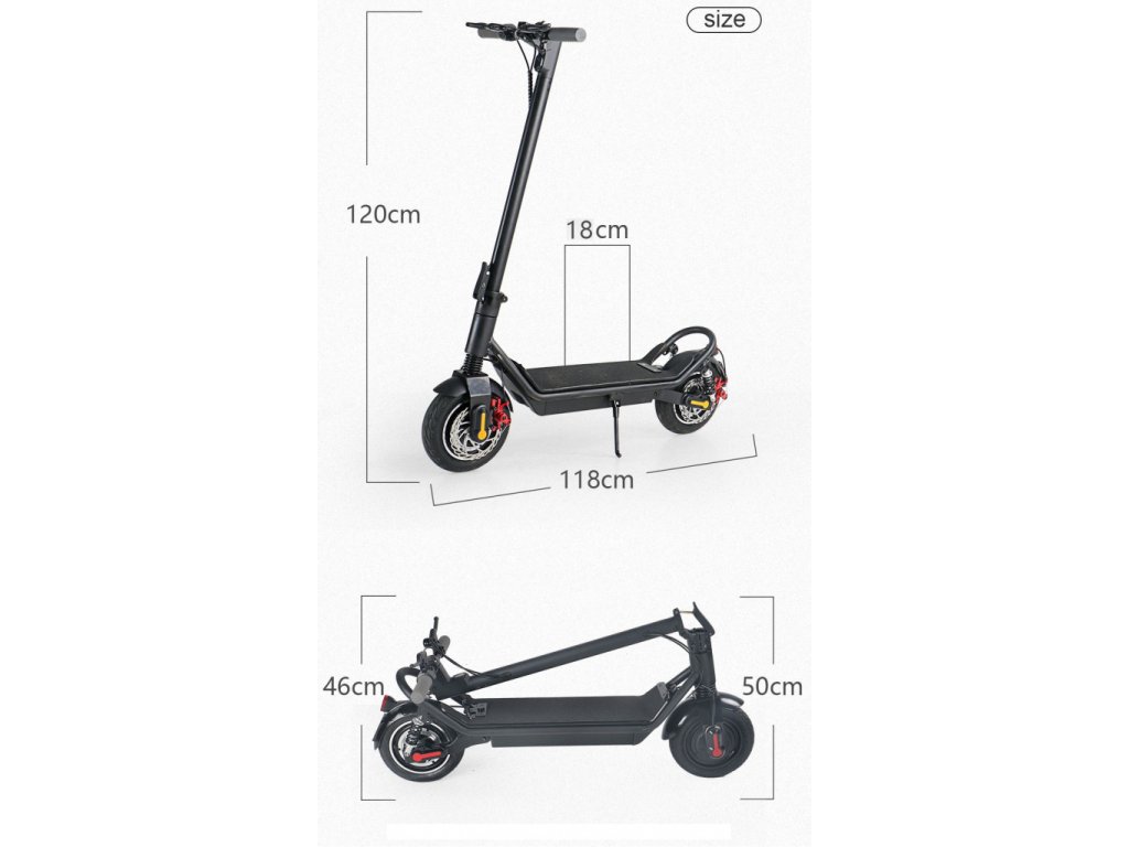 118 × 46 × 50 cm / 118 × 46 × 120 cm šírka nášľapnej plochy: 18 cm šírka riadidiel: 58 cm |