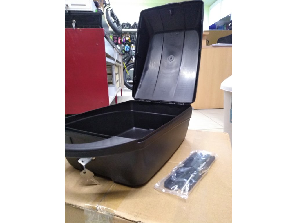 prevedenie: rýchloodnímateľný z nosiča bicykla, prachu a dažďu odolný, zamykací - pribalené dva kusy kľúčov, plastová rúčka na ľahší prenos kufra, aj s plastovou platňou na uchytenie