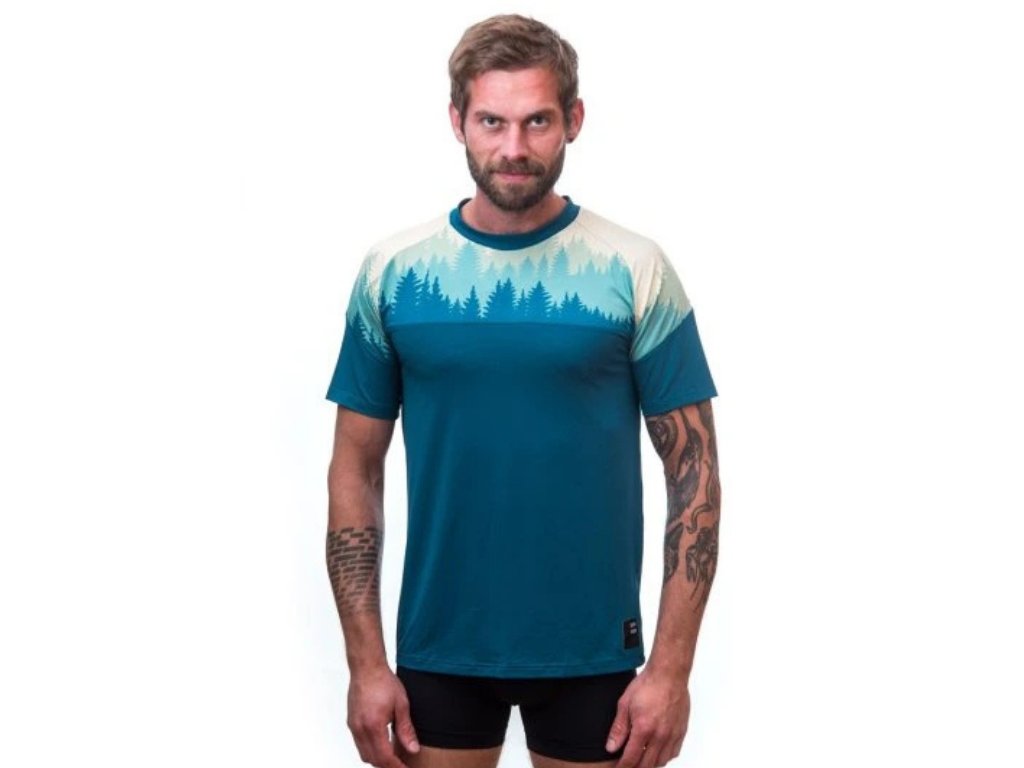 SENSOR COOLMAX IMPRESS pánske tričko krátky rukáv, zafír/stromy, v. XL
