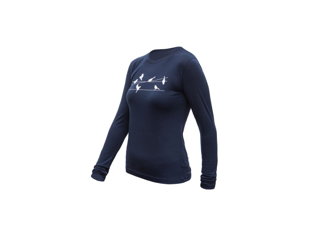 SENSOR MERINO ACTIVE SONGBIRDS dámske tričko dl. rukáv sýta modrá, v. S