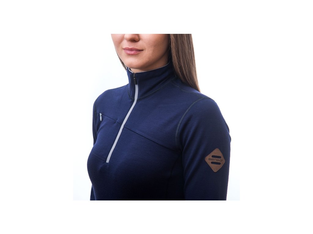 SENSOR MERINO UPPER dámska mikina krátky zips sýta modrá, v. M